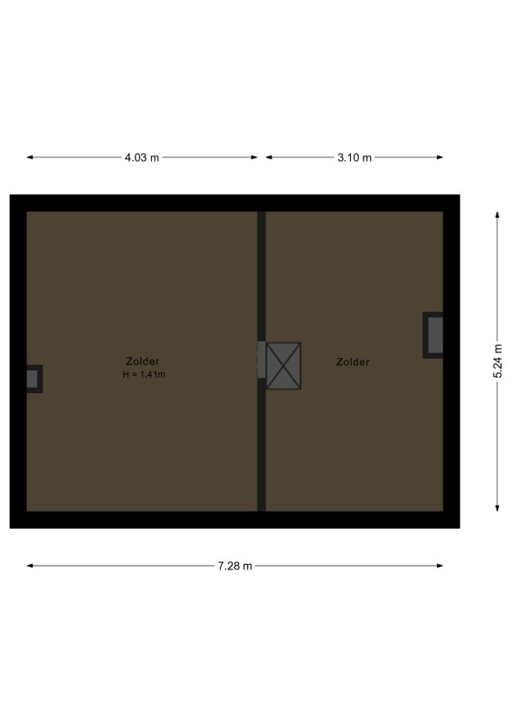 Middels vlizotrap toegang tot de bergzolder.