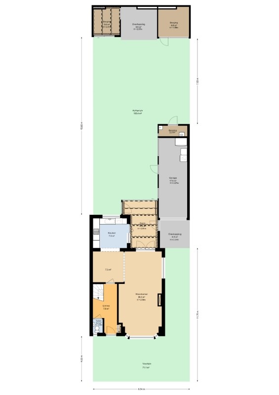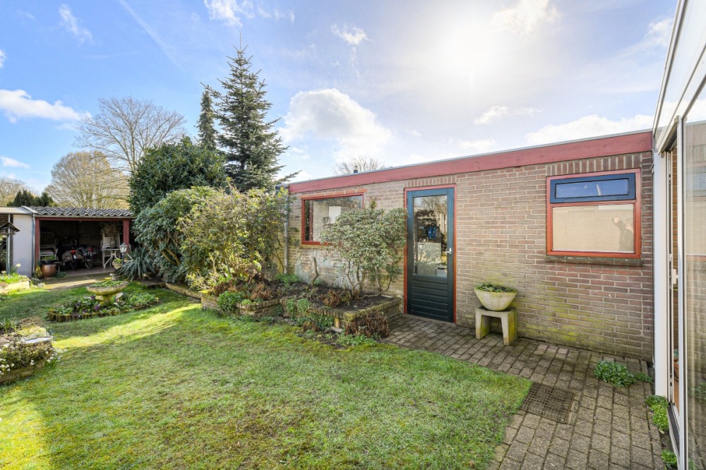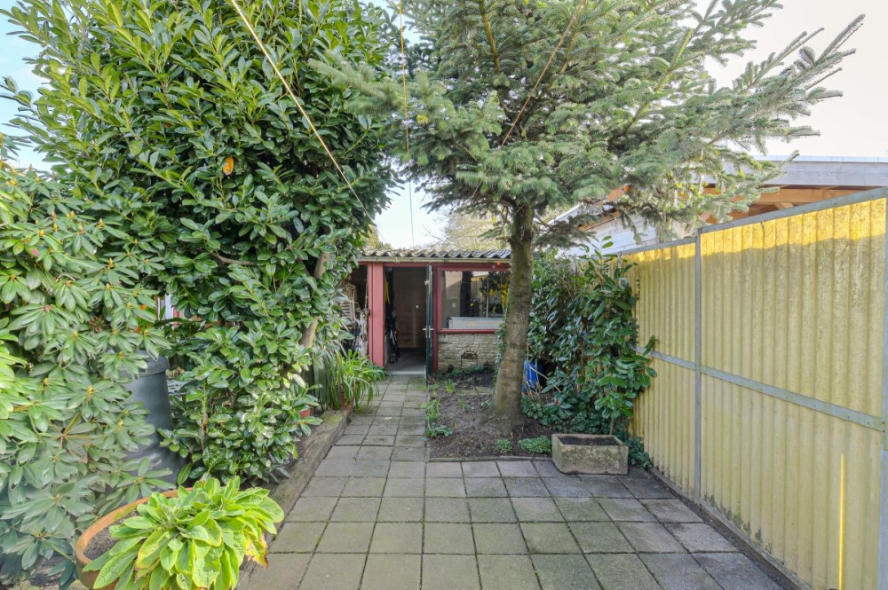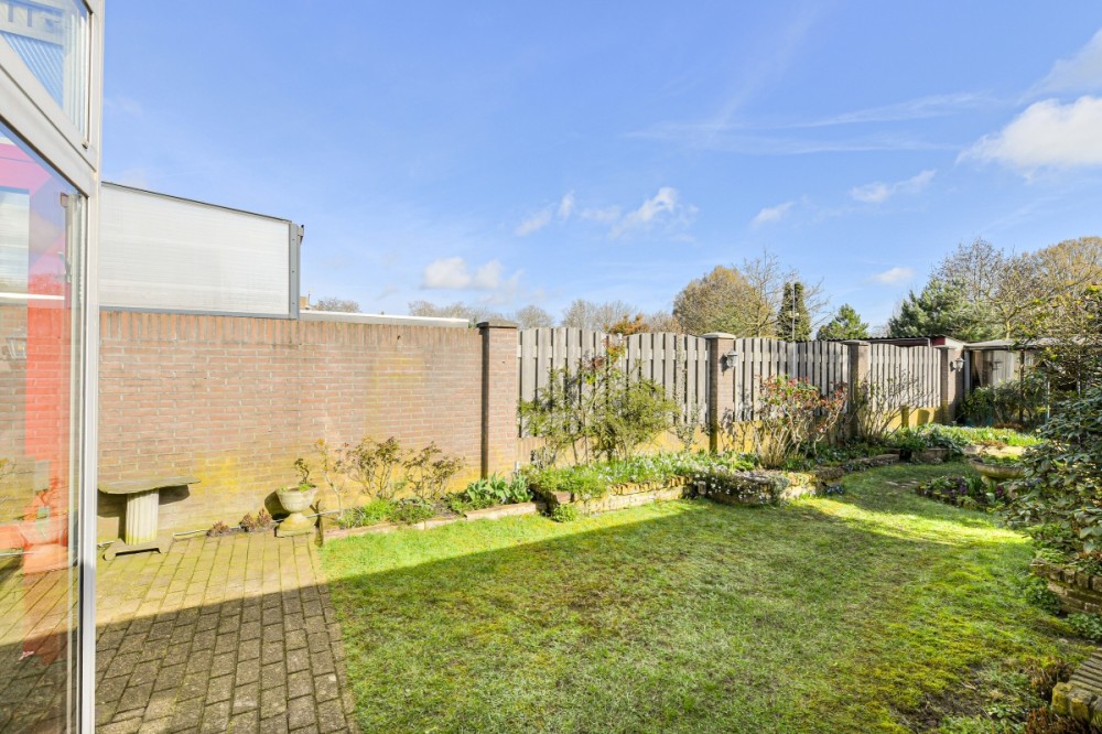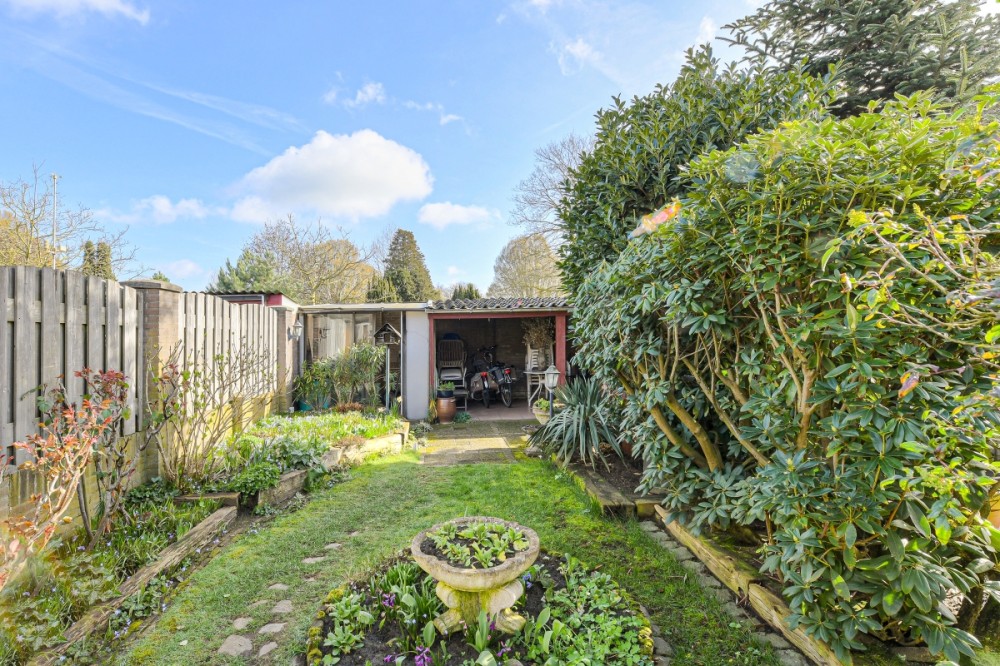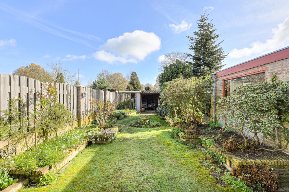 De diepe tuin is gelegen op het oosten en biedt heel veel privacy. Door de ligging is er de mogelijkheid om te genieten van de zon of om de schaduw op te zoeken. Achter in de tuin is nog een extra berging gerealiseerd met veranda.