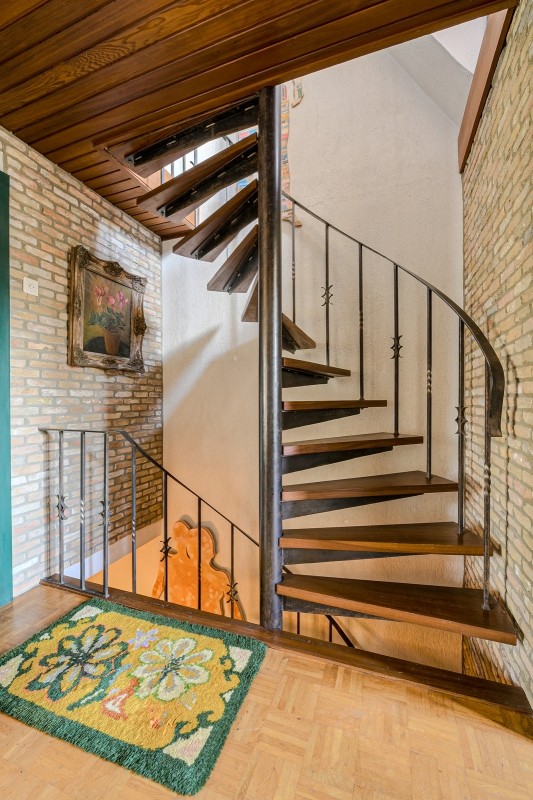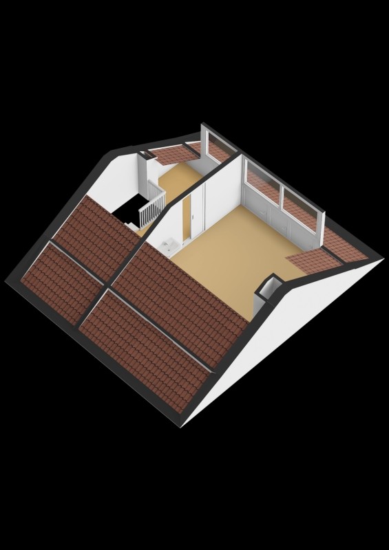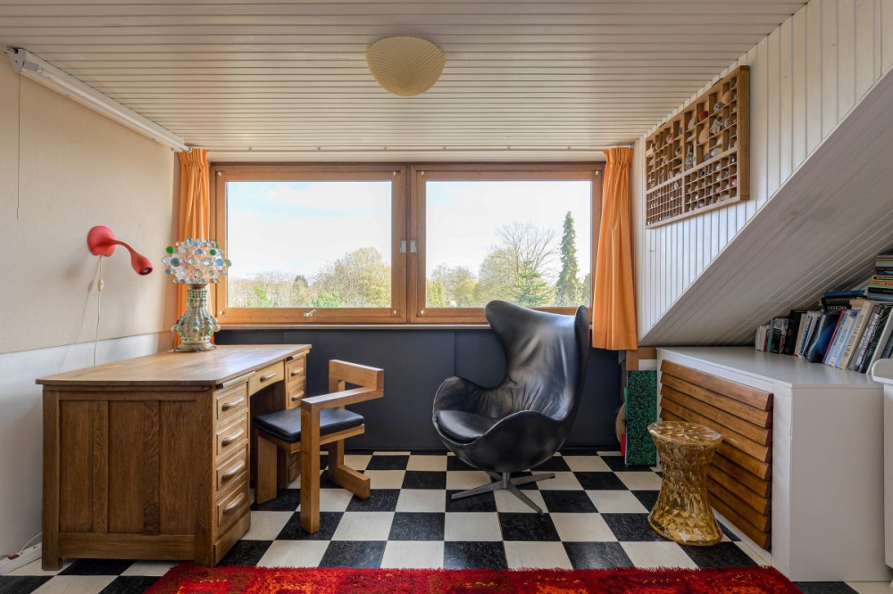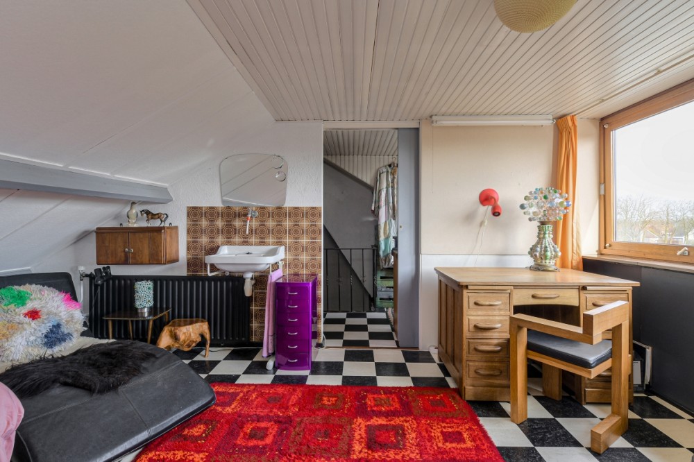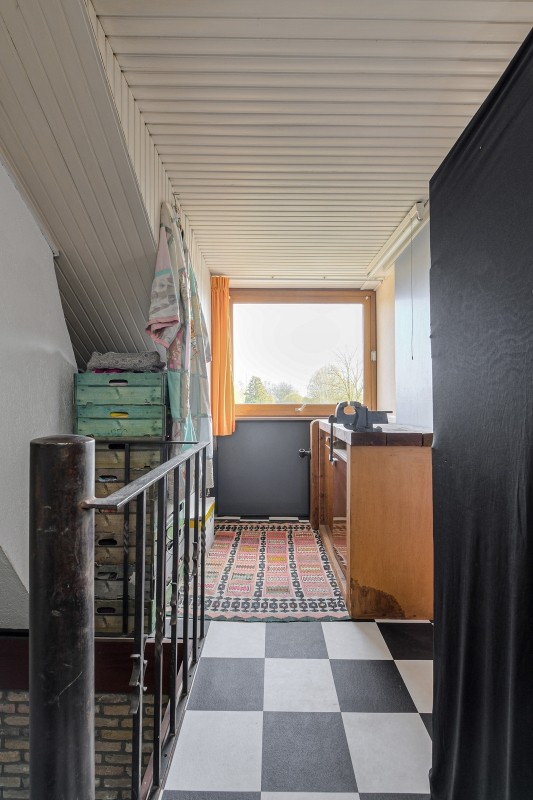 Middels vaste trap toegang tot de voorzolder met geiser en dakkapel.