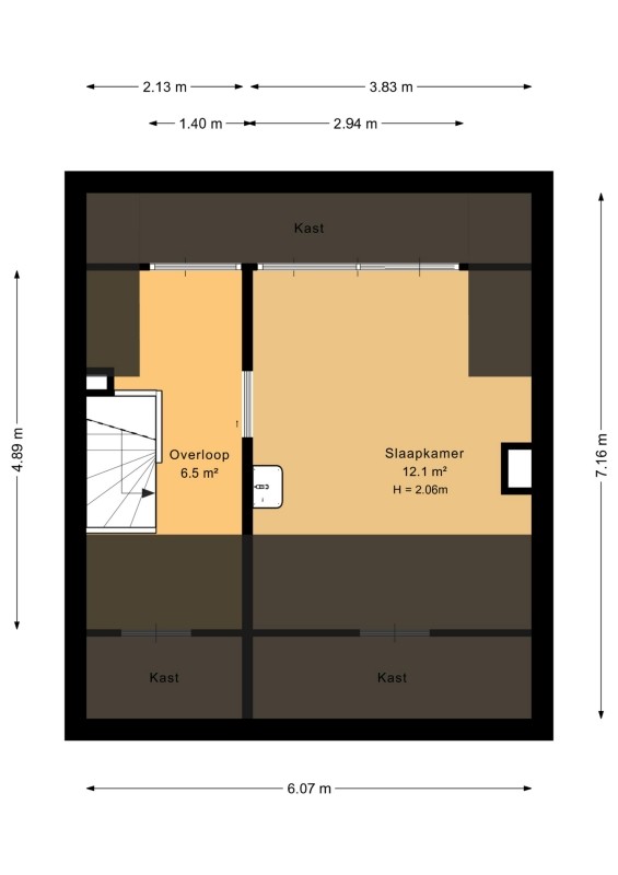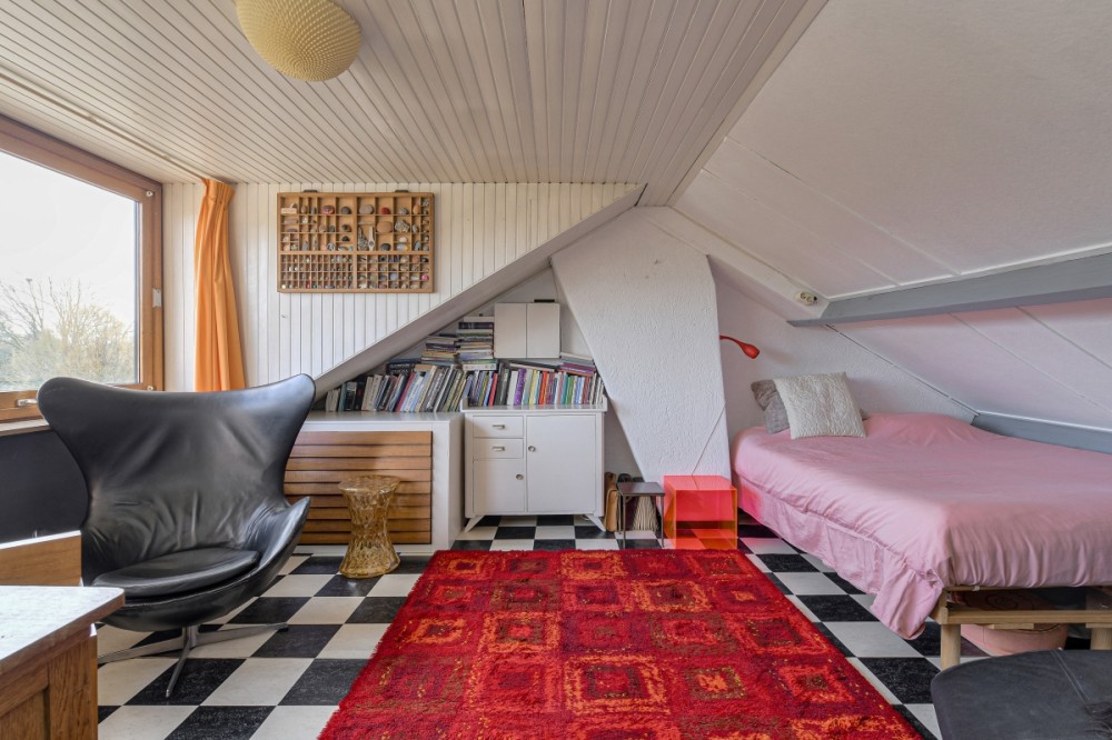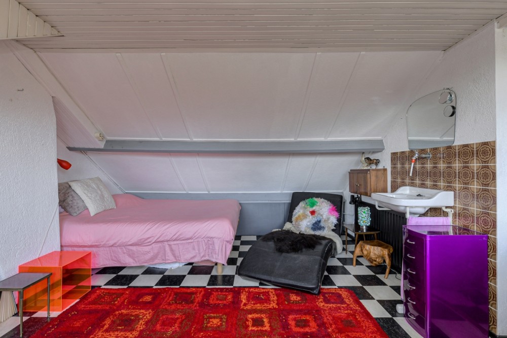 Slaapkamer met dakkapel en vaste wastafel (koud water).