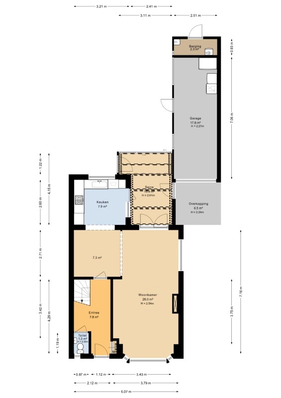 De verlengde garage, met een afmeting van circa 17,5 m2, is voorzien van een kanteldeur en aparte stookruimte met een cv-ketel Ferroli (bouwjaar 2021).