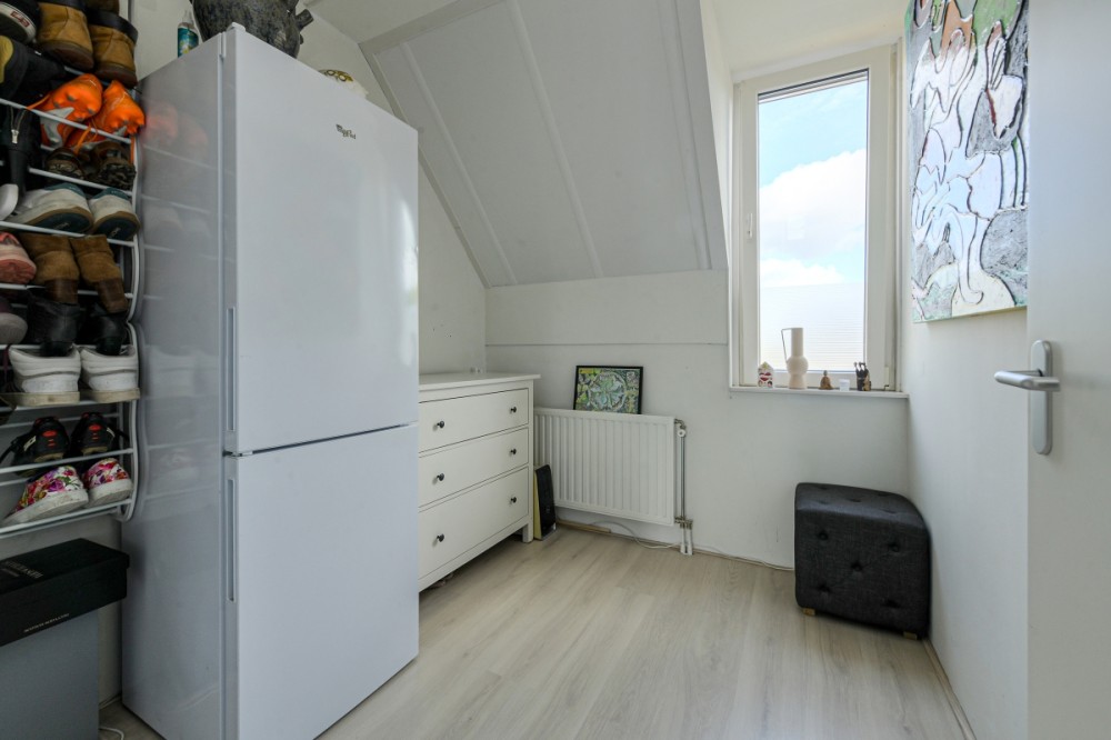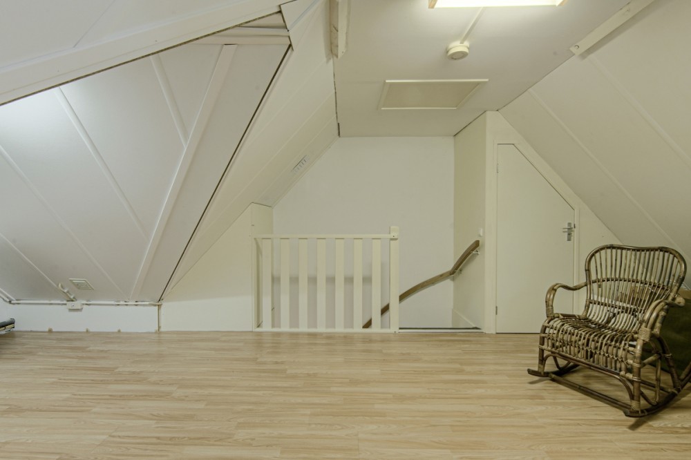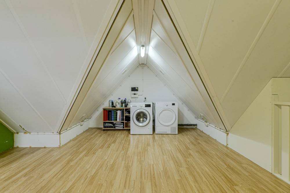 Middels vaste trap toegang tot de open hobby/bergzolder voorzien van laminaatvloer. Voorts treft u hier de opstelplaats van de c.v.-combiketel (Intergas HR, 2010) aan alsmede de unit van de mechanische afzuiging en de aansluiting ten behoeve van de wasautomaat.. Middels luik toegang tot bergzolder.