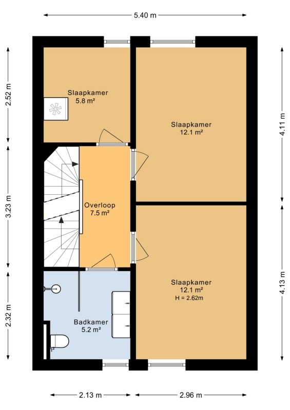 Voorslaapkamer afm. ca. 4.13 x 2.96m.