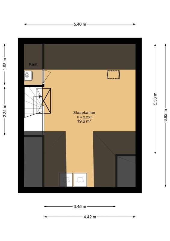Achter-slaapkamer afm. ca. 2.13 x 2.52m.