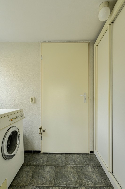 Vanuit de keuken te bereiken bijkeuken (ca. 3.5m2) en voorts de inpandige garage. De garage is verwarmd en beschikt over een handmatige (hand bedienbare) segmentdeur. ca. 5.41 x 2.90m (ca. 16m2)
