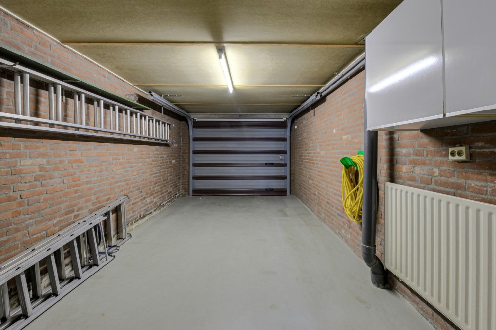 Riante garage welke vanuit de bijkeuken en vanaf de oprit is te bereiken met handmatige segmentdeur en strak afgewerkte vloer.