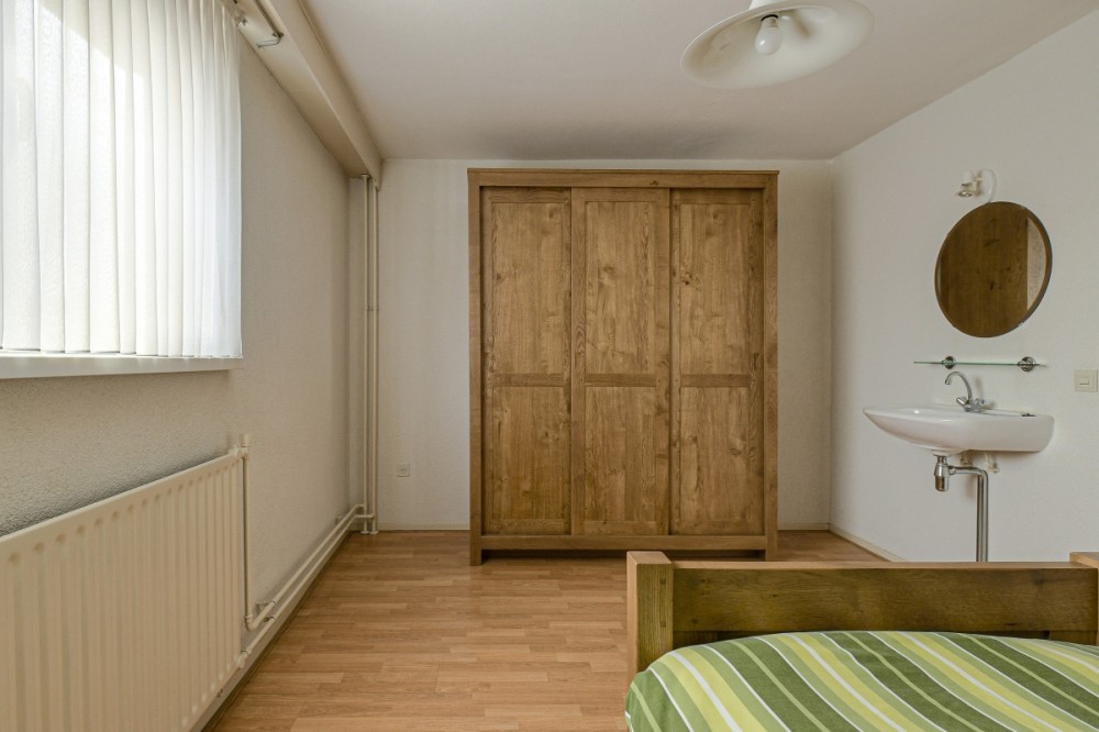 Ruime slaapkamer 1 aan de voorzijde, afm. ca. 3.12 x 4.77m (ca. 15m2) voorzien van een wastafel met warm en koud water en kunststof draai-/kiepramen voorzien van een voorzet hor.