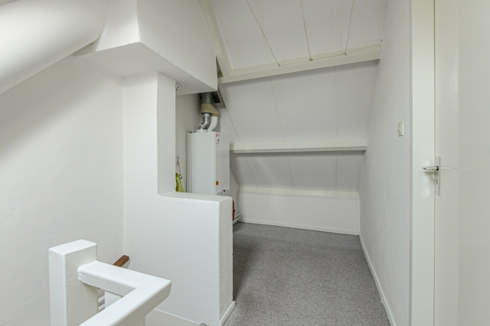 Deze keurig afgewerkte verdieping is middels een vaste trap toegankelijk en biedt plaats aan de voorzolder (ca. 6.5m2) en een grote zolder slaapkamer. Op de voorzolder bevindt zich de CV-ketel.