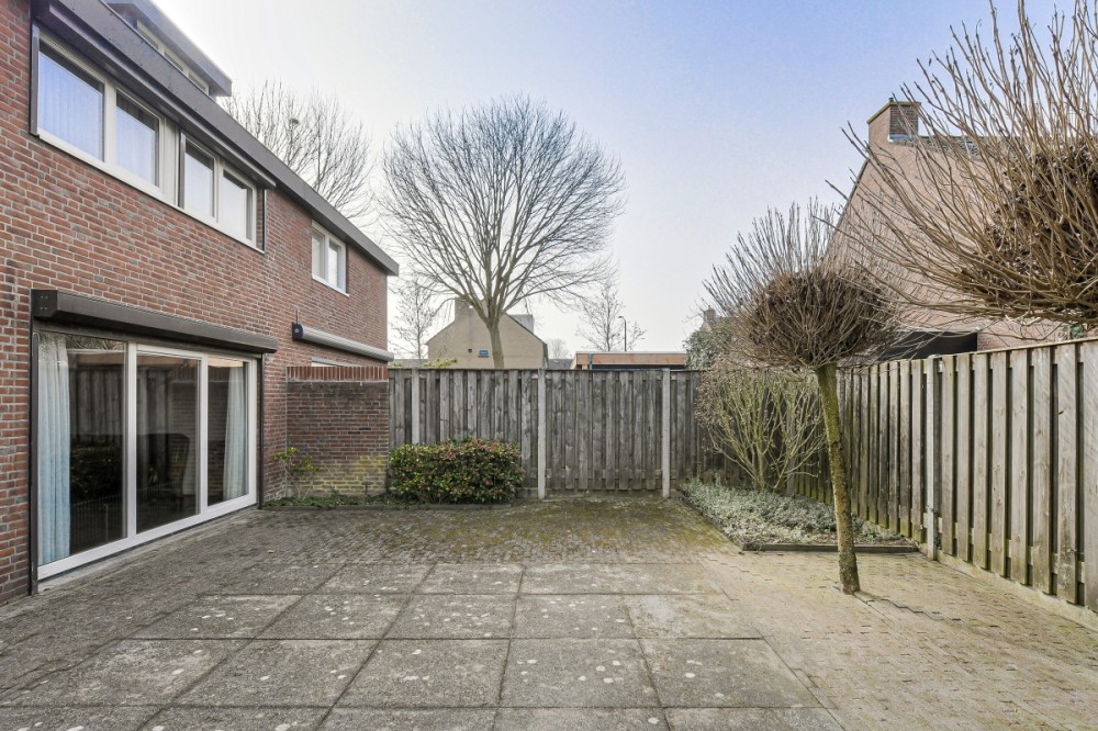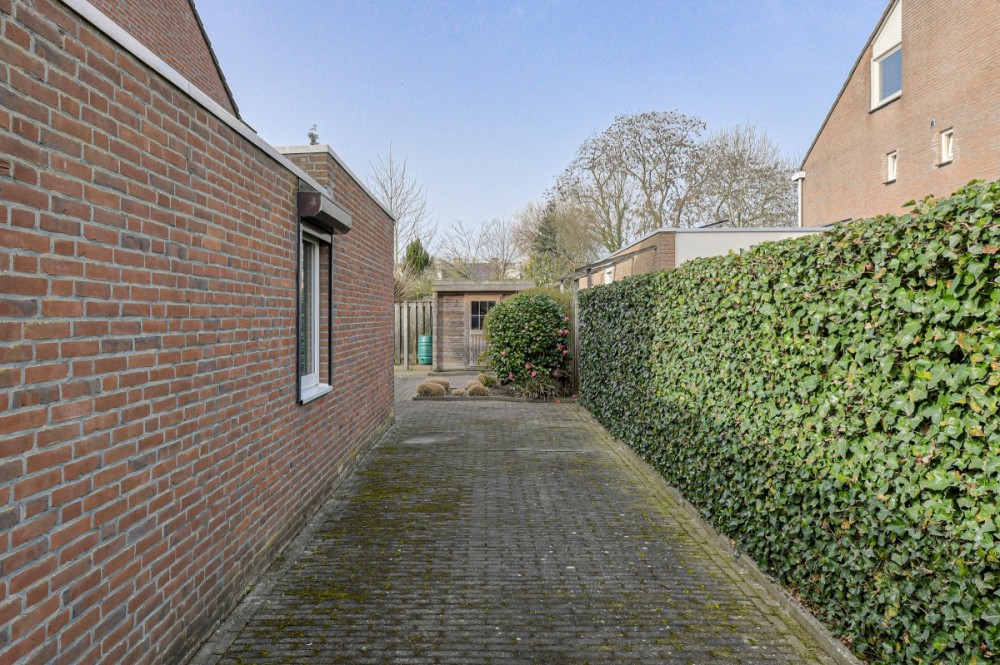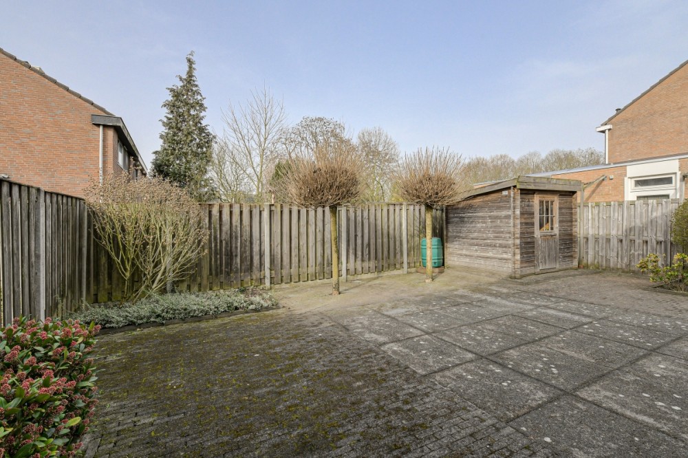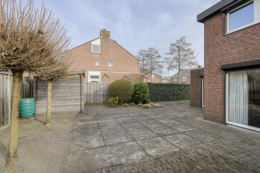 Zowel vanuit de woonkamer als de keuken is de royale tuin bereikbaar welke op het westen is gesitueerd. De tuin beschikt over een riante aan de zijkant gelegen oprit met poort en is voorzien van diverse terrassen, borders met beplanting, houten berging, Door het ontbreken van (directe) achterburen geniet men optimale privacy.