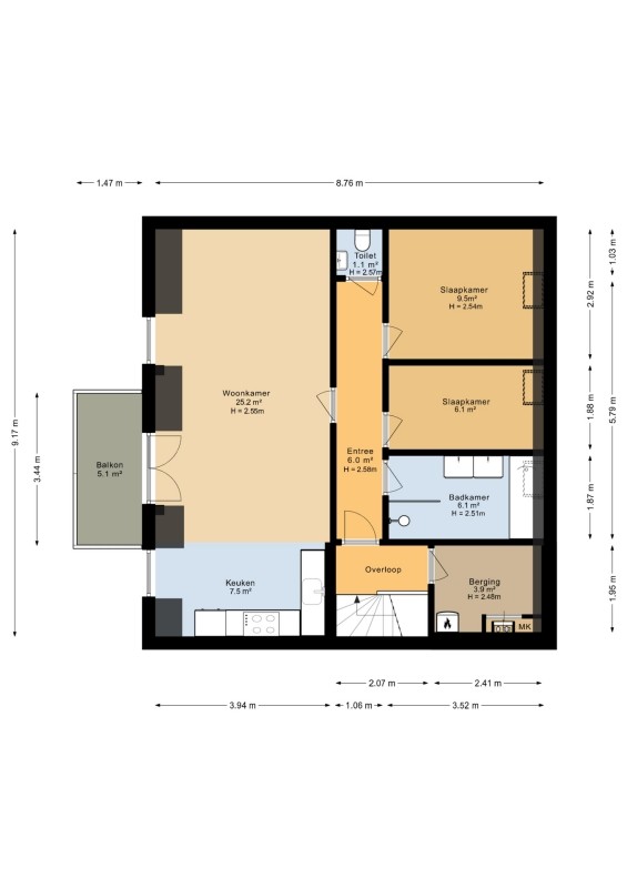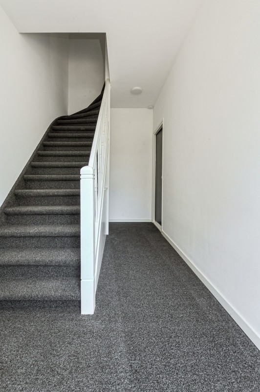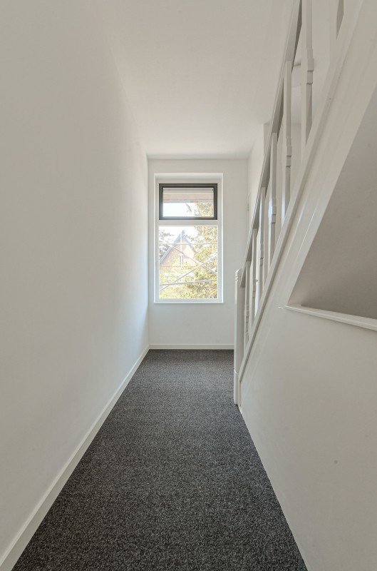 Middels een trapopgang is het appartement bereikbaar. De entree / hal met volledig betegeld toilet met fonteintje biedt toegang tot de woonkamer, badkamer, 2 slaapkamers en de berging met aansluiting t.b.v. de wasaparatuur.