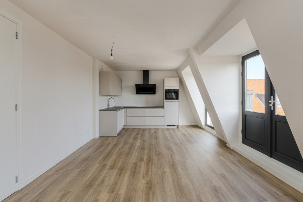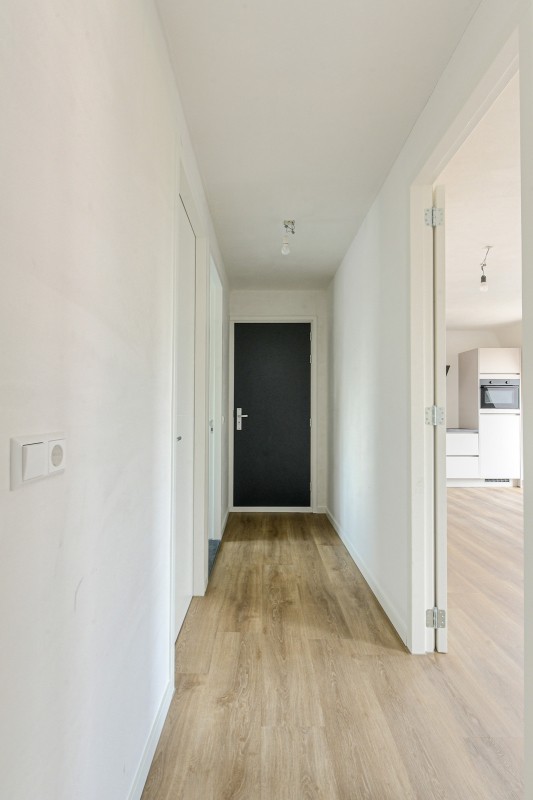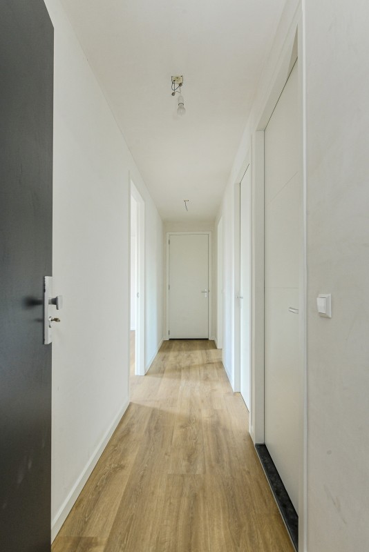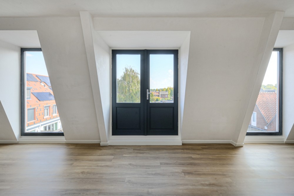 De ruime en lichte woonkamer is voorzien van drie grote raampartijen, waarvan één met dubbele openslaande deuren naar het balkon. De overige ramen betreft een kiepsysteem in verband met valbeveiliging. Deze grote ramen zorgen voor veel daglicht en een vrij uitzicht. De gehele woning is voorzien van een PVC vloer met vloerverwarming.