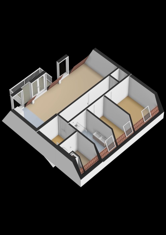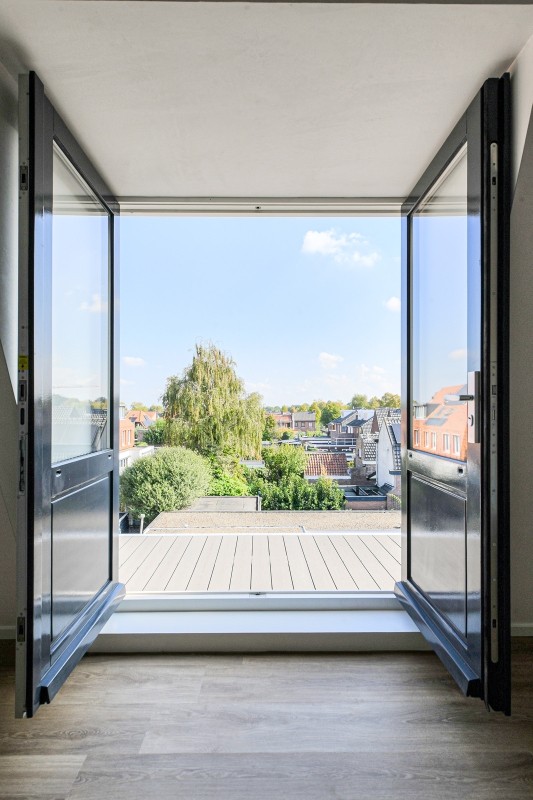 Het balkon is vanuit de woonkamer toegangelijk en is op het oosten gesitueerd. Zal uiteraard nog verder afgewerkt worden.