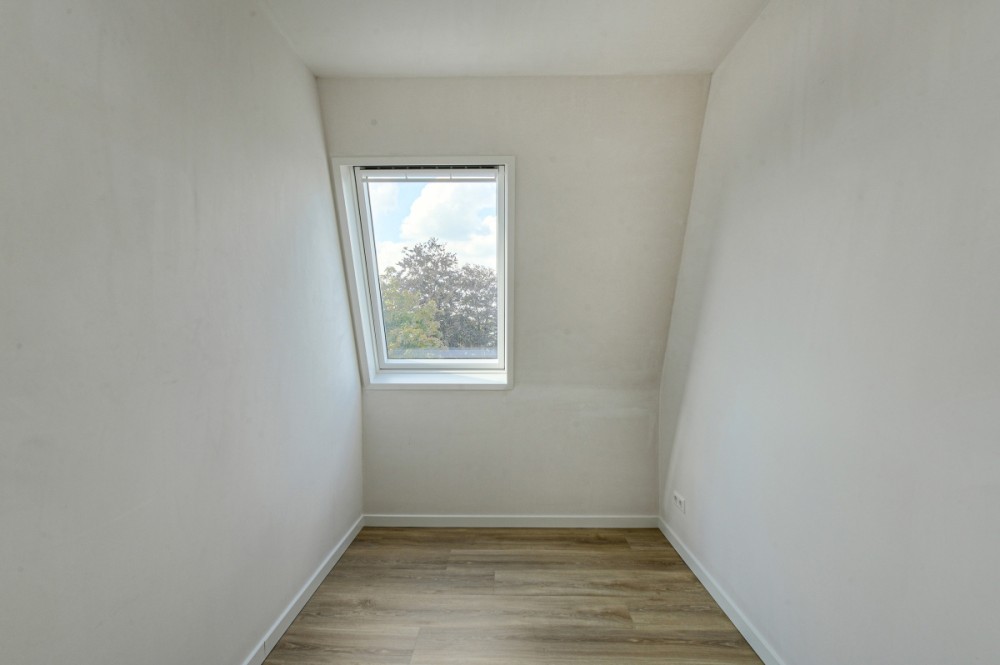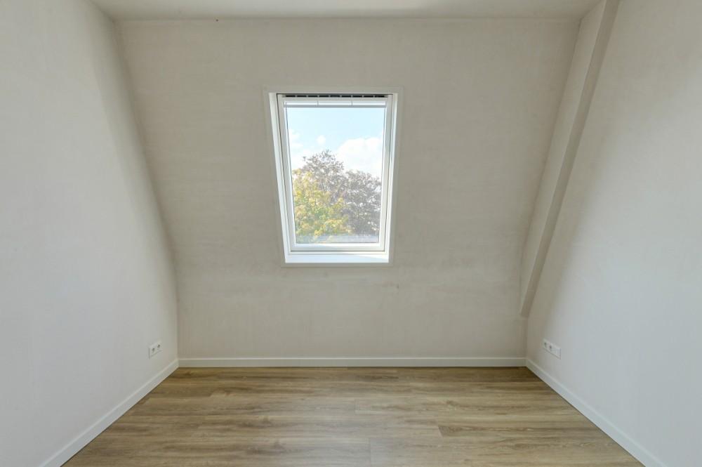 De woning beschikt over twee slaapkamers, beide voorzien van een Velux dakraam en vloerverwarming. De slaapkamer grenzend aan de badkamer is ideaal als hoofdslaapkamer of werkkamer; de tweede slaapkamer is ruimer van opzet.
