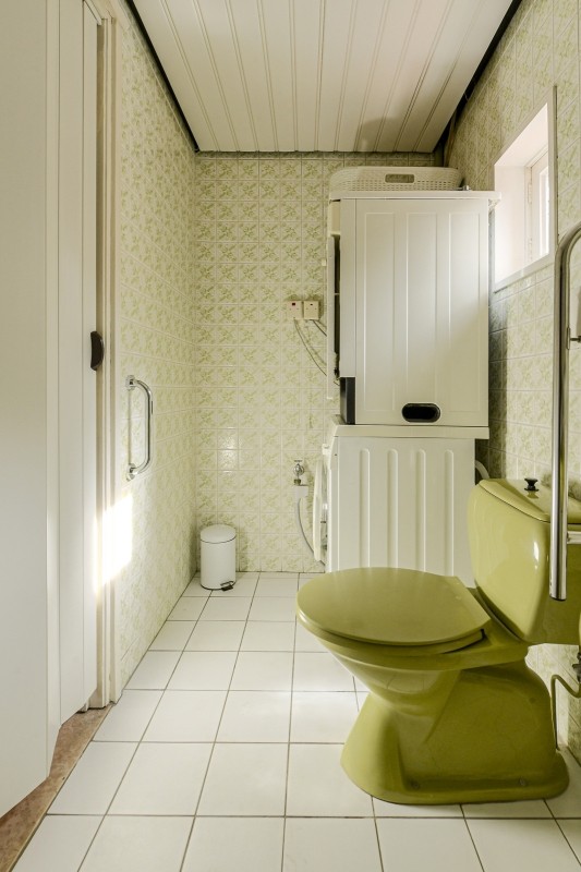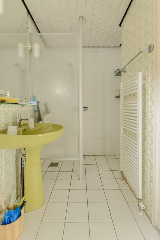 Aan de zijkant gelegen badkamer met inloopdouche, tweede toilet en opstelplaats wasmachine droger.