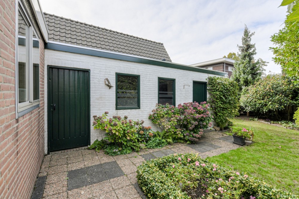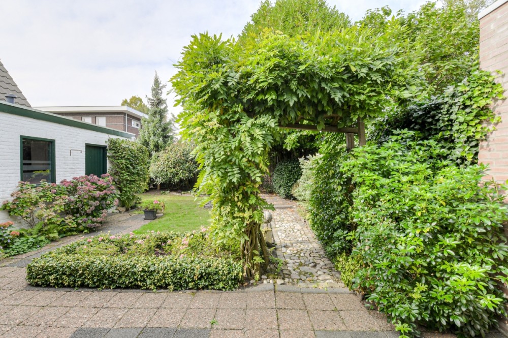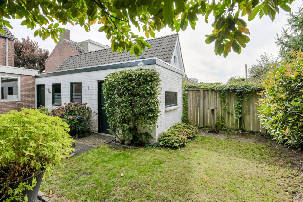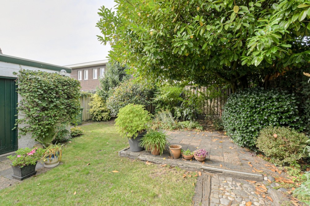 De achtertuin is op het westen gesitueerd en is uitstekend onderhouden met o.a. verschillende terrassen, een grasveld, gezellige overkapping en borders met verschillende beplanting.