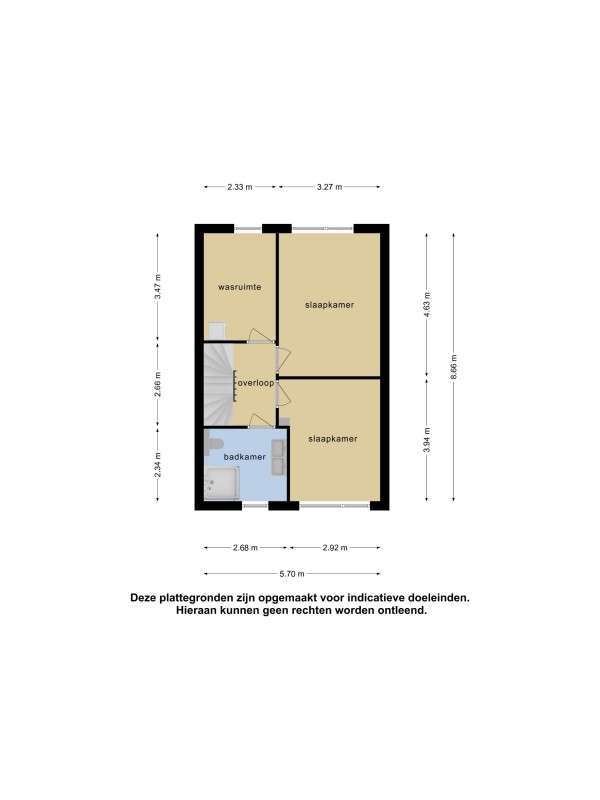 Vanaf de overloop zijn drie slaapkamers, de badkamer alsmede de vaste trap naar de tweede verdieping bereikbaar.