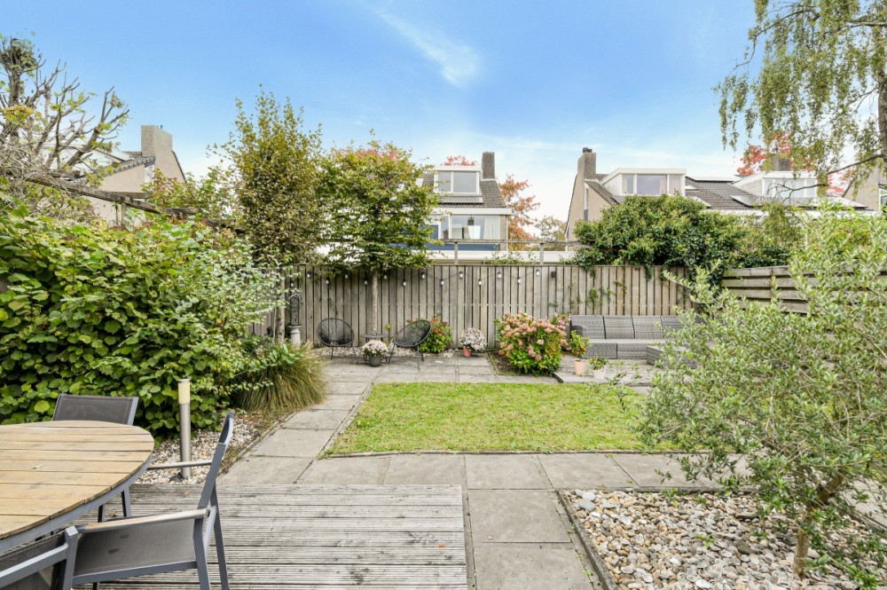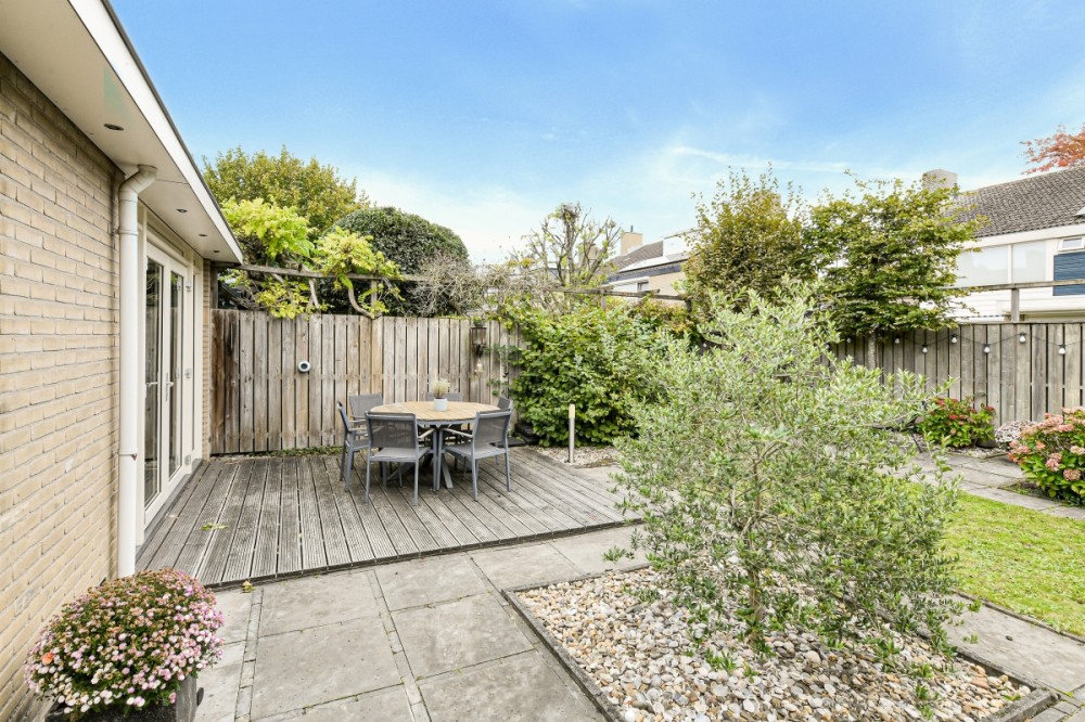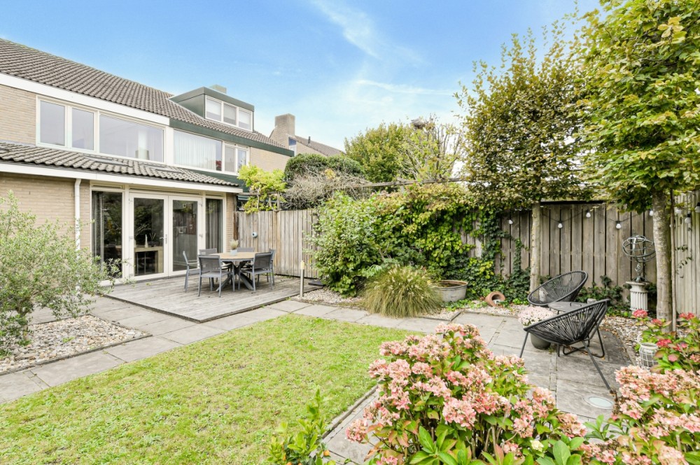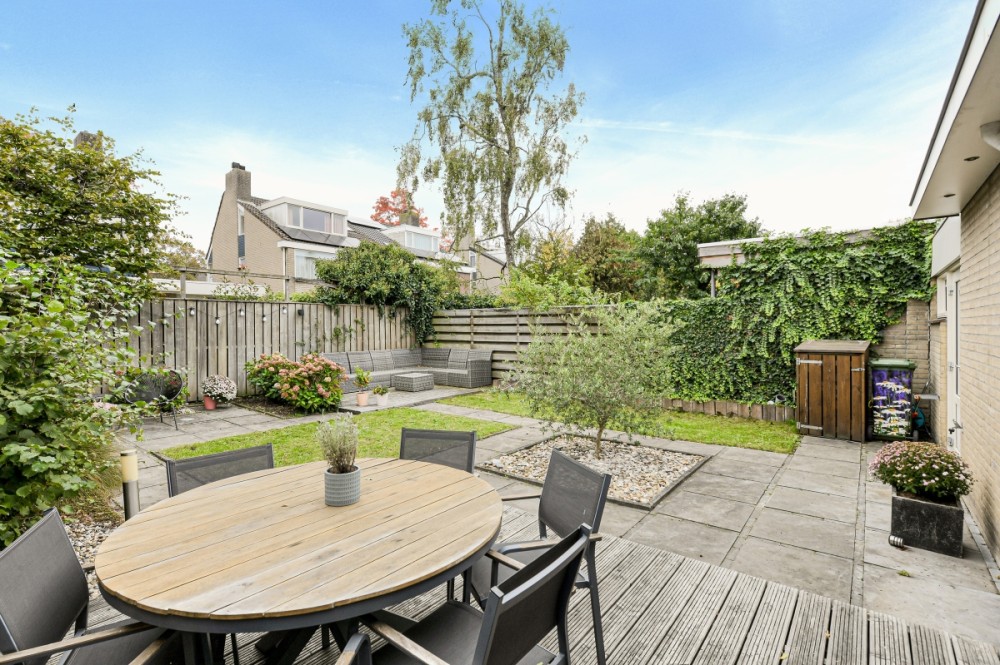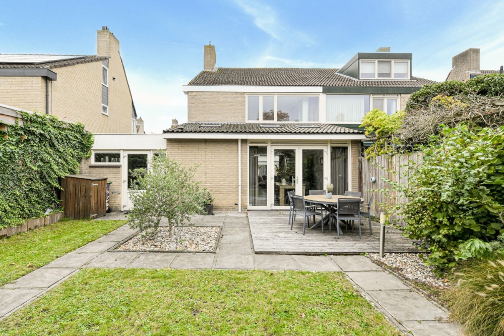 In gewilde kruidenbuurt, op rustige locatie gelegen ruime en goed onderhouden helft van een twee onder een kapwoning met uitgebouwde eetkamer, garage, carport, royale oprit voor 2 auto’s en fraai aangelegde tuin gesitueerd op het oosten met royaal terras uitgevoerd in hardhouten vlonders.
