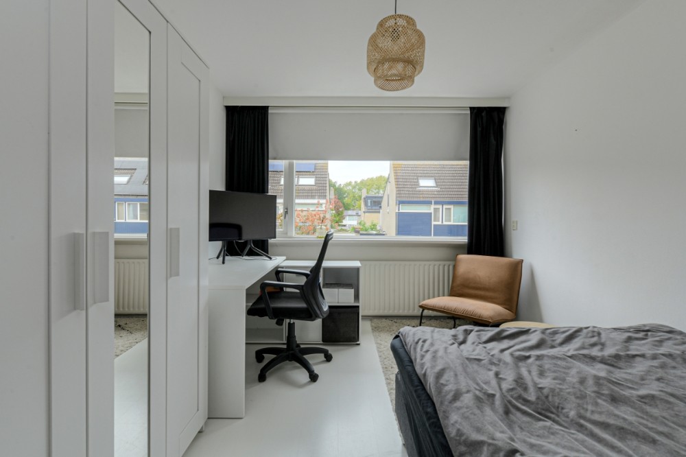 Ouderslaapkamer achterzijde, afmeting ca. 16.4m² , is voorzien van een laminaatvloer en kunststof draai/kiepramen.