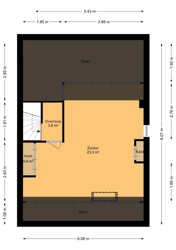 Middels een (vernieuwde) vaste trap te bereiken zolderverdieping van ca. 23.3 m² met velux dakraam, de mogelijkheid bestaat om 2 slaapkamers te creëren. Tevens bevindt zich op de tweede verdieping de opstelling van de cv-combiketel.