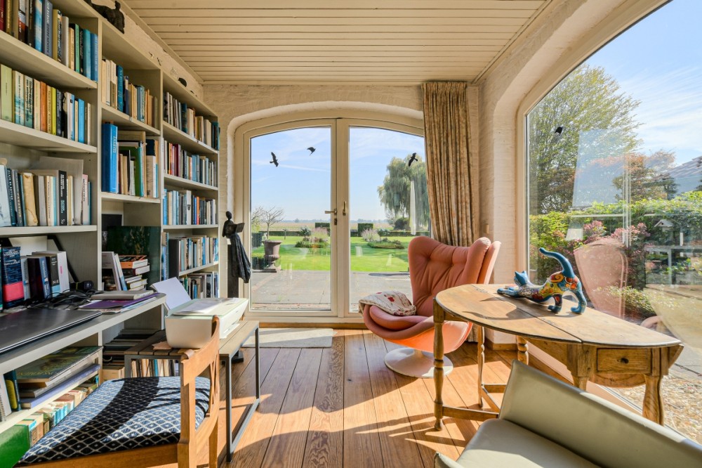 Aansluitend aan de achterzijde bevindt zich een heerlijke tuinkamer, met een grote raampartij en toegang naar het terras, een fijne plek om in alle seizoenen van het buitenleven te genieten.