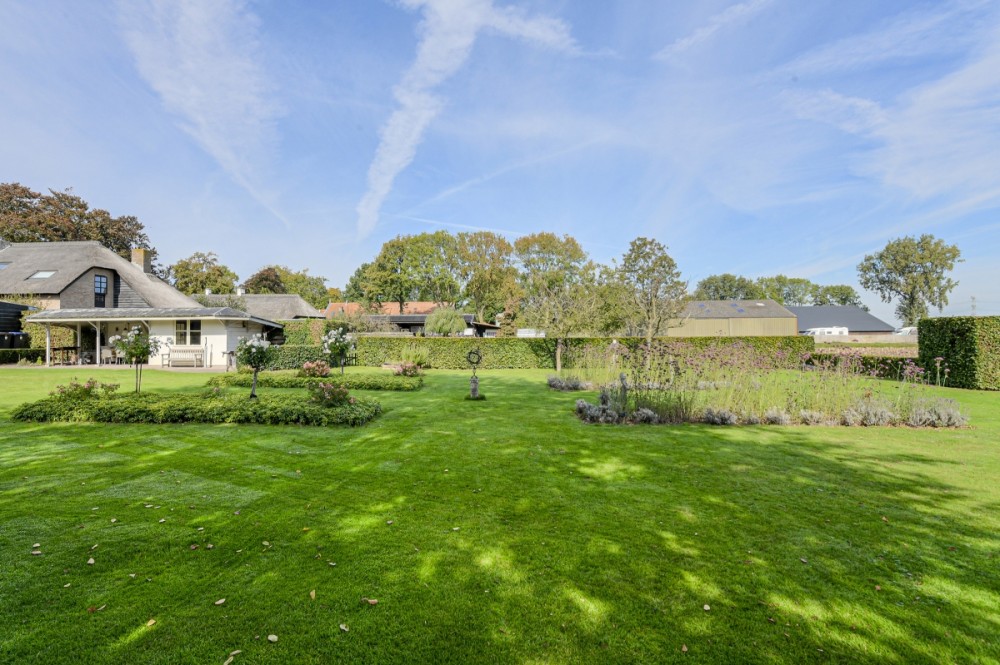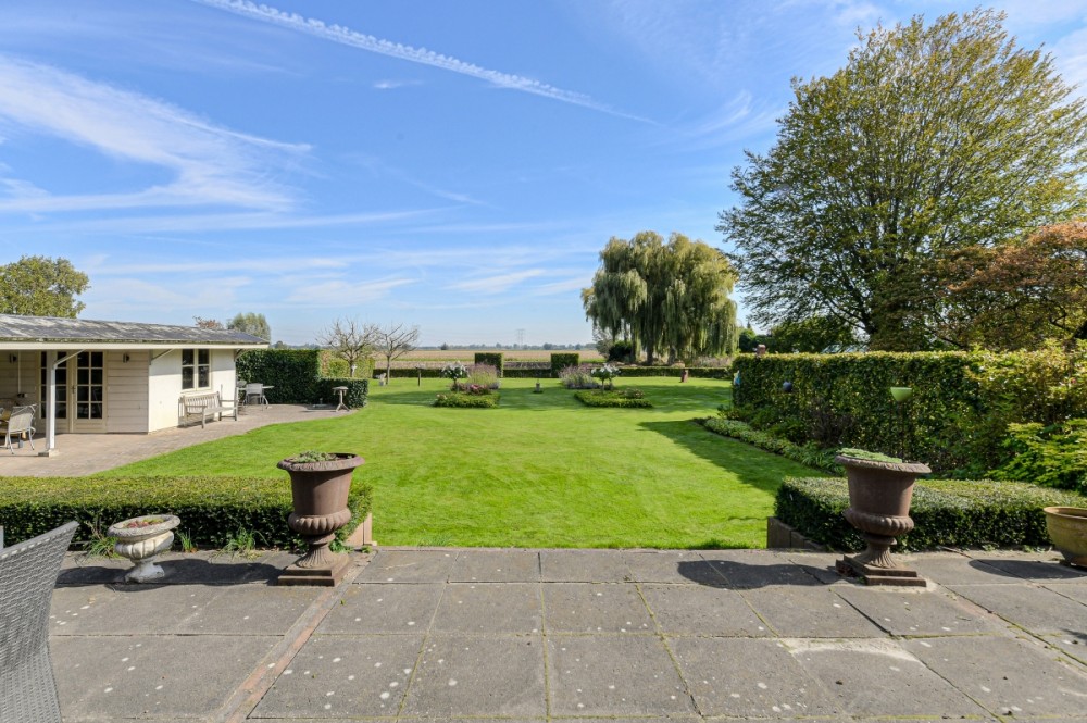 Rondom de woning ligt een fraai aangelegde tuin, volledig in harmonie met de landelijke omgeving. Aan de voorzijde bevindt zich de Vaart. Aan de achterzijde geniet u van een ongehinderd uitzicht over de weilanden, met een gevoel van ruimte dat zeldzaam is. De tuin van circa 1.200 m² (40m diep x 30m breed) biedt volop buitenruimte, met een schitterend gazon, meerdere terrassen, een berging en een tuinhuis met stijlvolle overkapping, perfect voor lange zomeravonden. De tuin is zeer onderhoudsvriendelijk door de aanwezigheid van een robotmaaier en sproei-installatie. Dankzij de vrije ligging en het groen rondom ervaart u hier optimale privacy, rust en vrijheid.