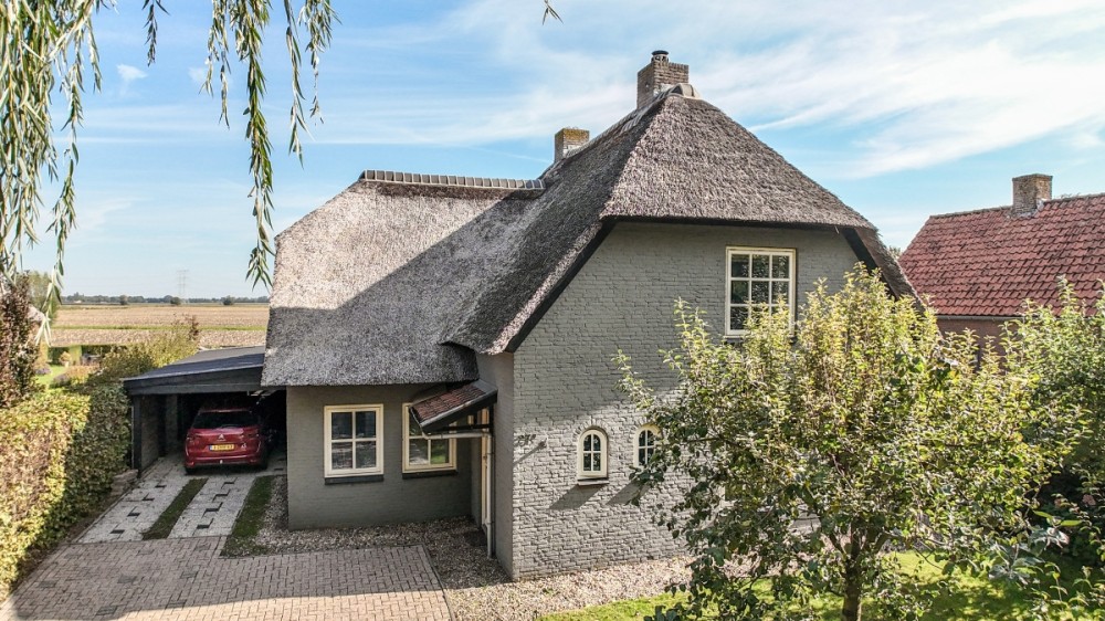 Gelegen aan de 's Gravenmoerse Vaart, met panoramisch uitzicht over de uitgestrekte landerijen aan de achterzijde, staat deze sfeervolle, rietgedekt woonhuis met 5 slaapkamers op een royaal perceel van 1.492m² grond. Via een eigen brug bereikt u dit charmante, vrijstaande woonhuis, een plek waar rust, natuur en comfort samenkomen. Een unieke kans voor wie landelijk en royaal wil wonen!