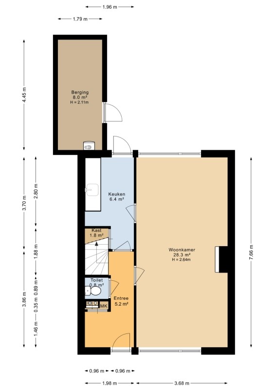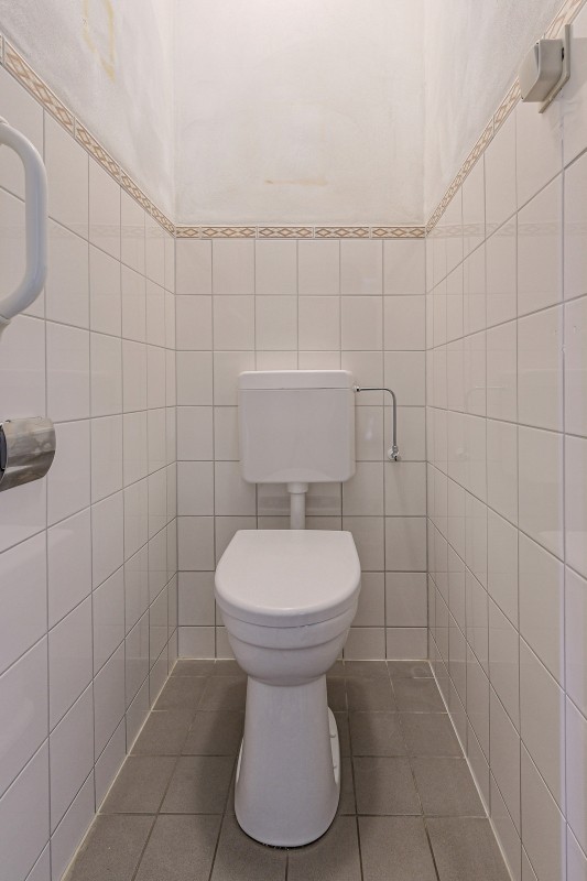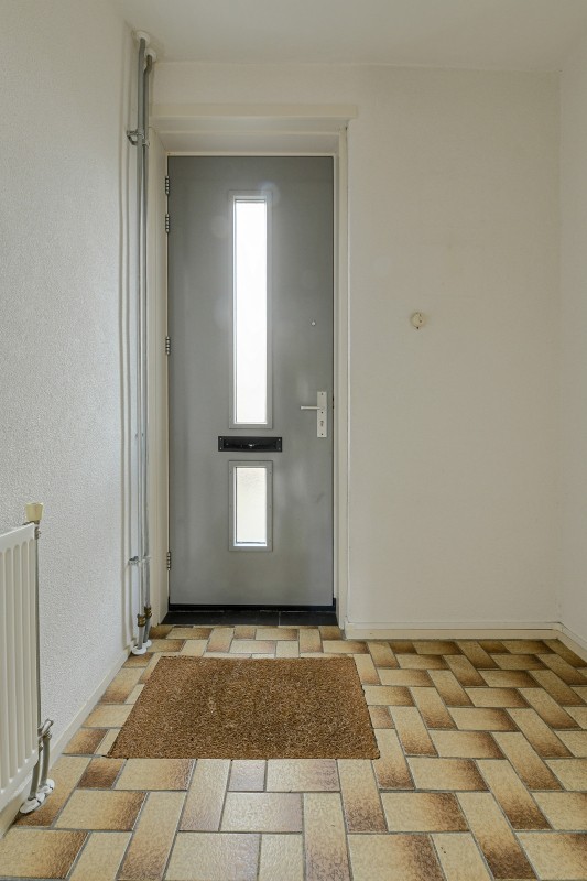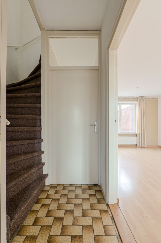 Entree/hal met tegelvloer, meterkast, toiletruimte en trapopgang welke toegang geeft tot de eerste verdieping.