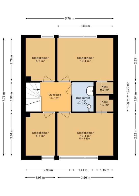 Slaapkamer 4: ca. 5.5 m² met laminaatvloer.