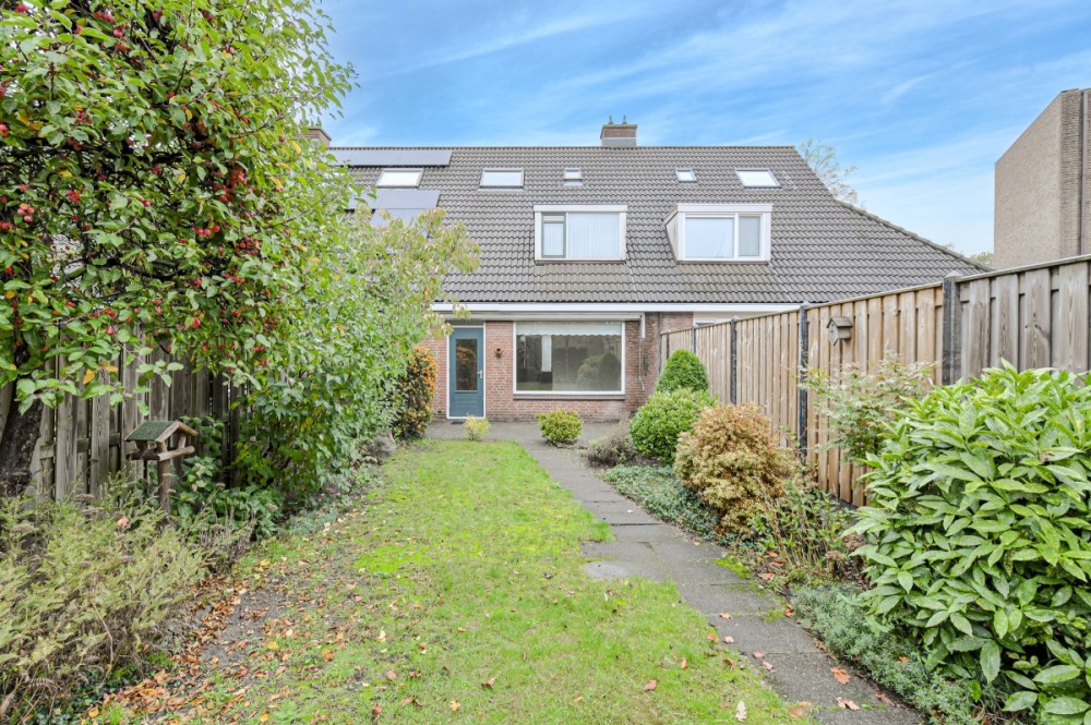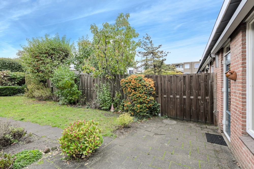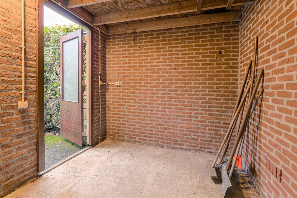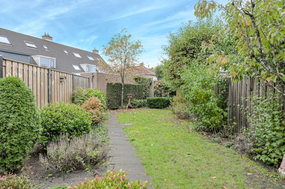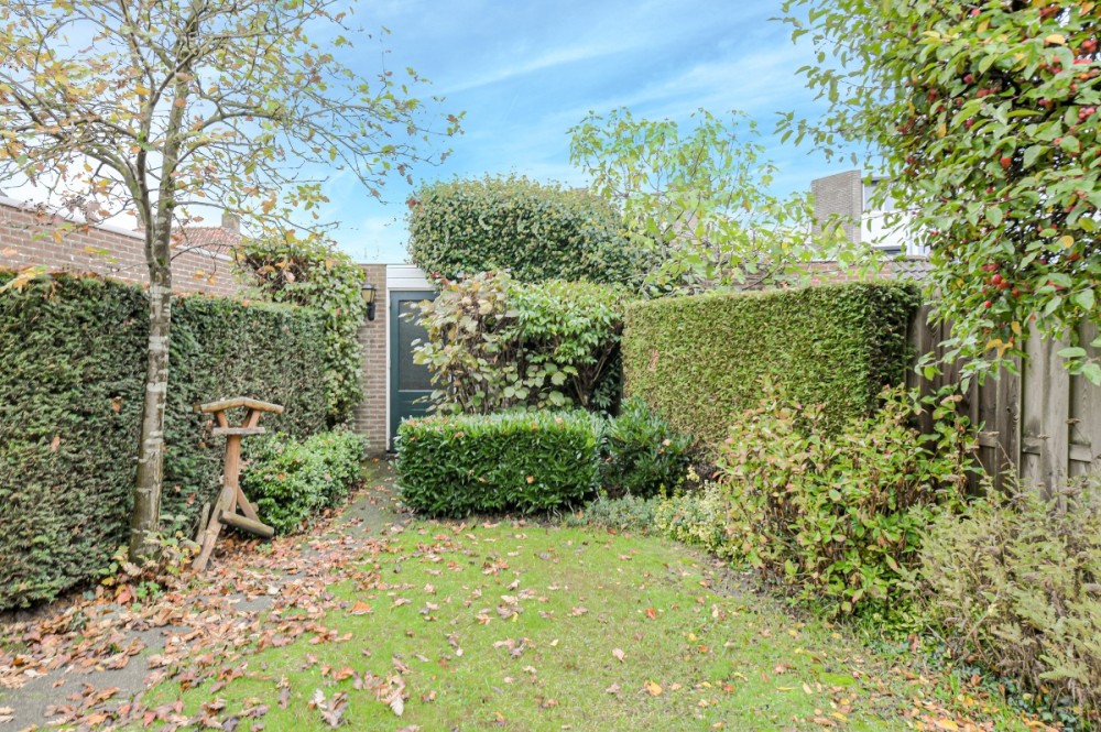 Leuke tuin op het westen gelegen met terras. Stenen berging voorzien van elektriciteit. Voorts achterom.