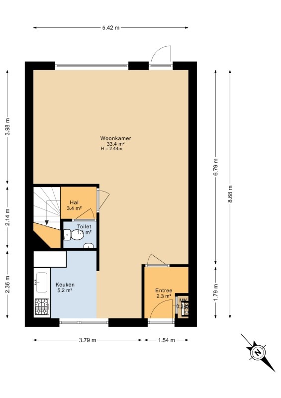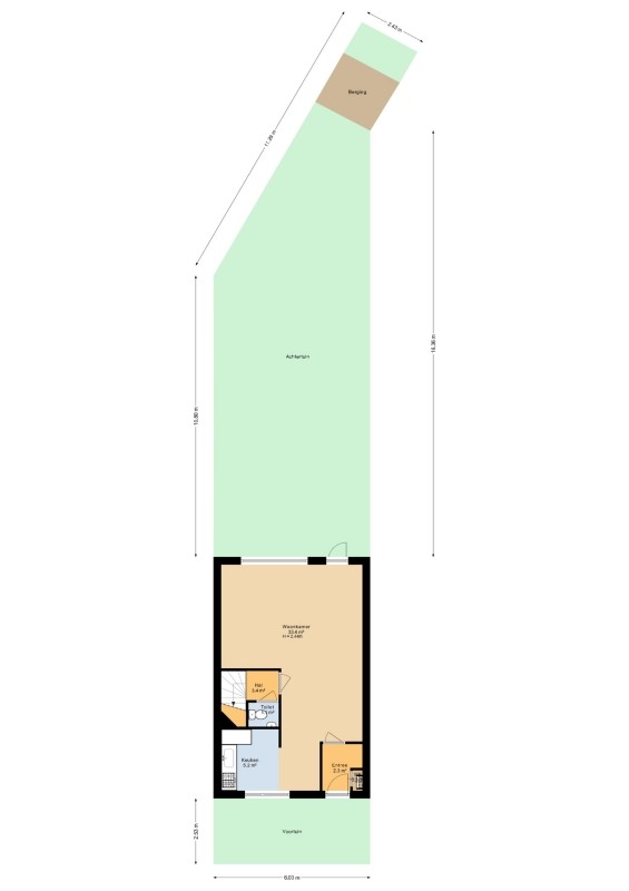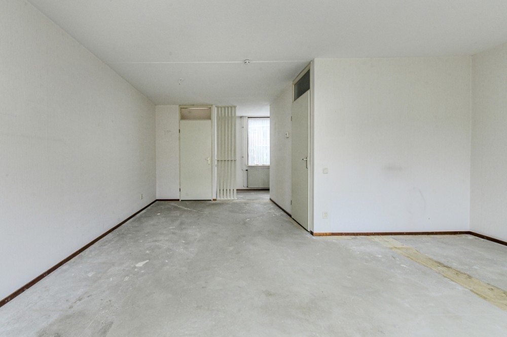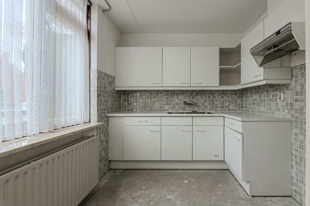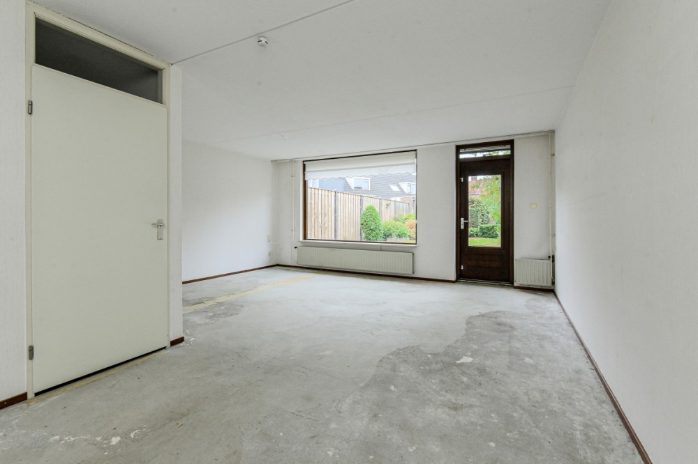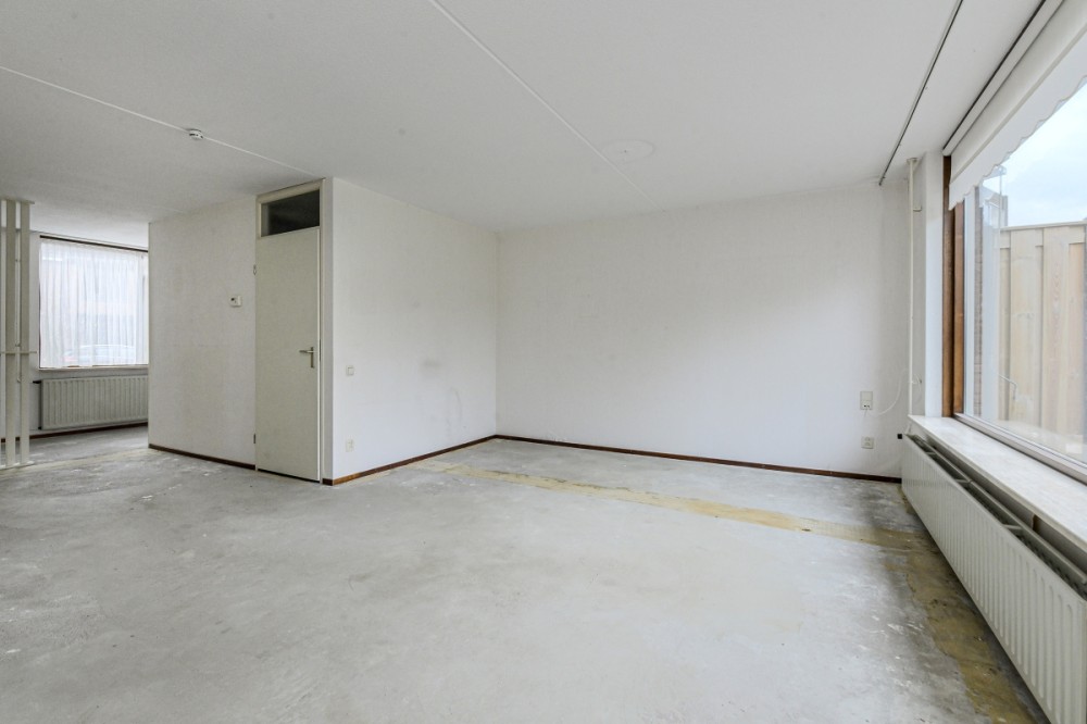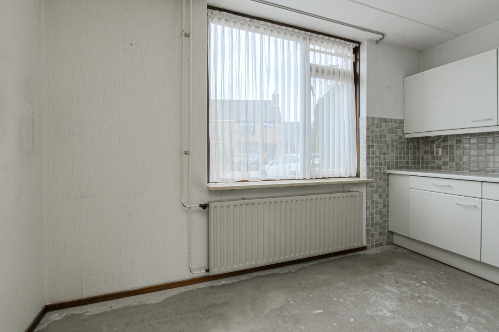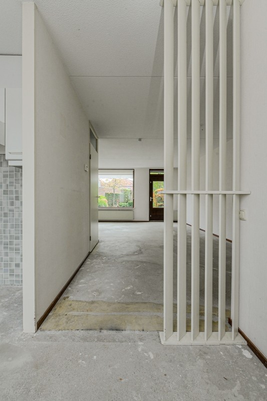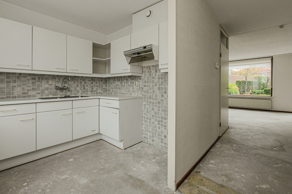 Entree met meterkast en plaats voor een garderobe. De keuken is aan de voorzijde van het pand gelegen, met een afmeting van circa 5.2 m2, en is uitgerust met een eenvoudig keukenblok met wasemkap. De op de tuin gerichte woon/eetkamer, afmeting circa 33 m2 en is royaal van opzet en voorzien van een loopdeur naar de tuin.