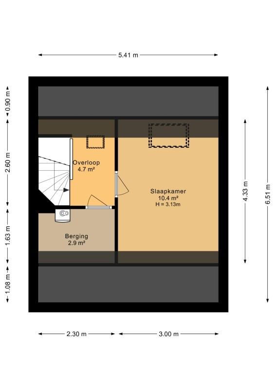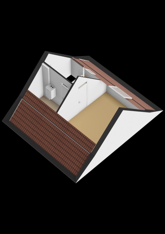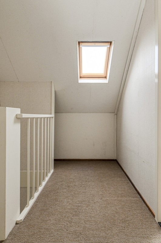 Voorzolder met unit mechanische afzuiging, opstelplaats combi-ketel en bergruimte. Volwaardige slaapkamer afmeting circa 10 m2 en voorzien van een tuimelraam.