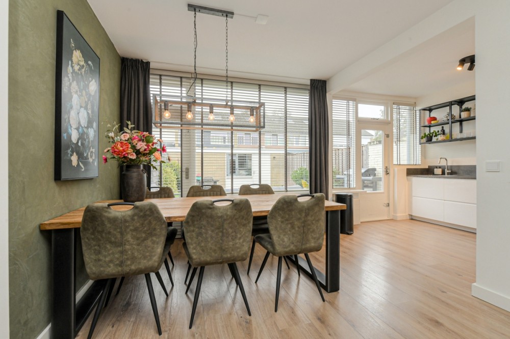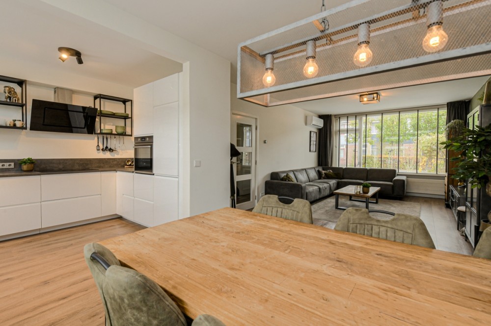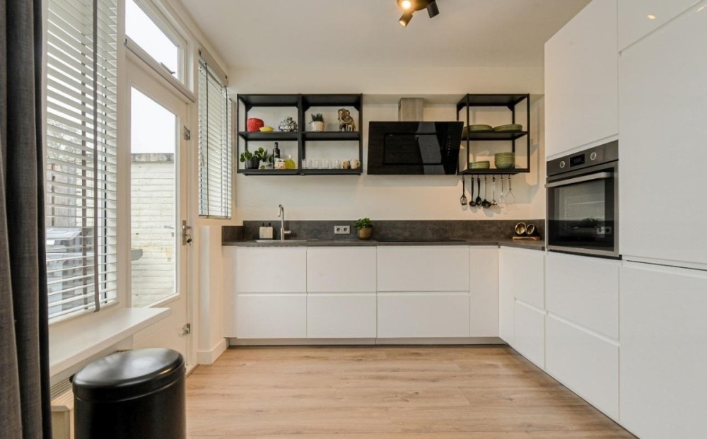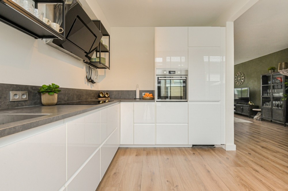 De open keuken ligt aan de achterzijde en is eveneens recent geplaatst. Deze moderne keuken is uitgerust met een inductiekookplaat, afzuiging, oven, vaatwasser, koel-/vriescombinatie en diverse opbergkasten. De open indeling zorgt voor een fijne verbinding tussen koken en wonen.