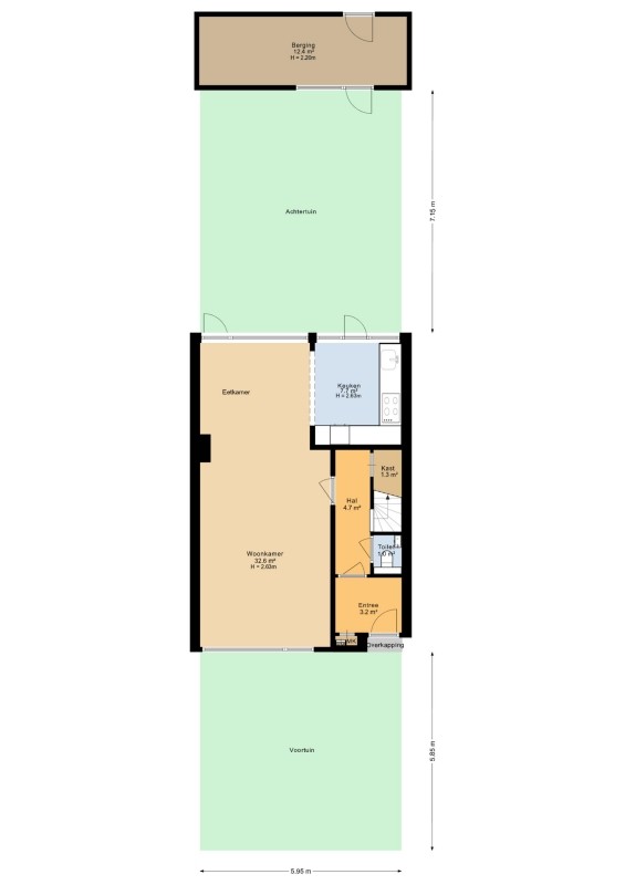 - Zonnige achtertuin op het zuidoosten met achterom en stenen berging met elektra;