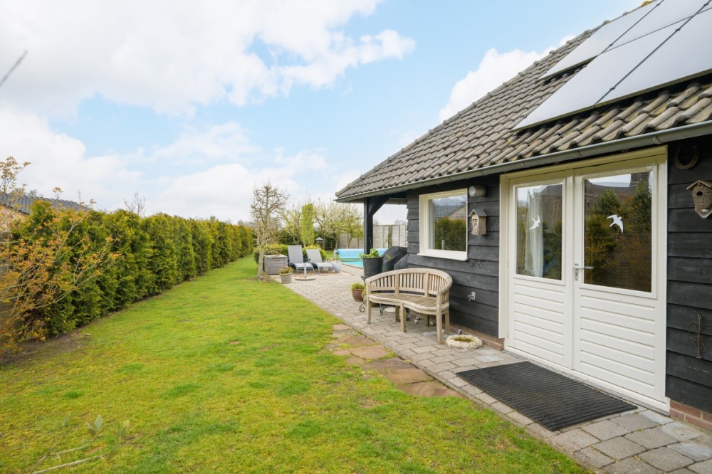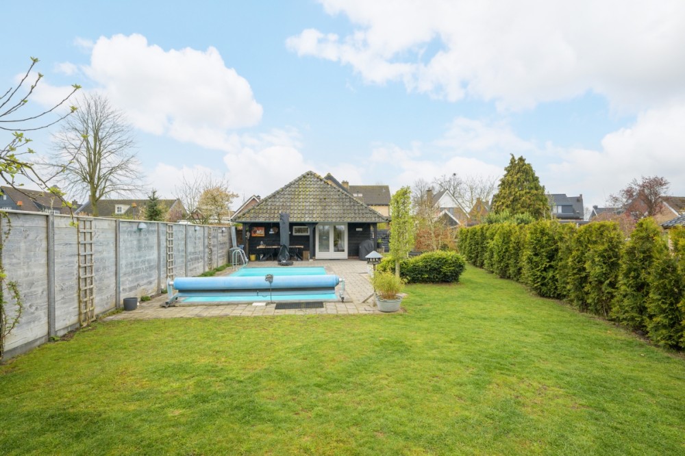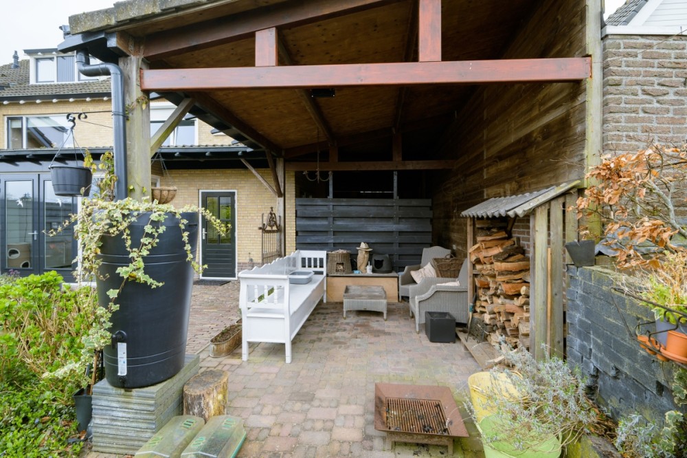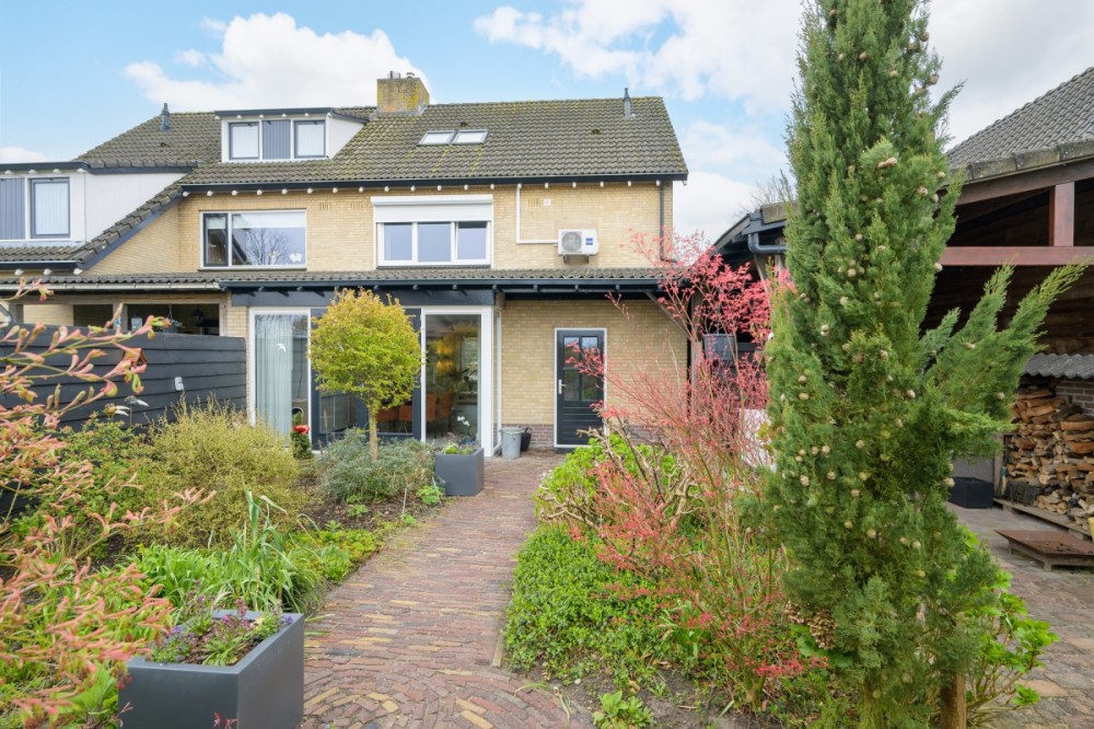 Deze karaktervolle, uitgebouwde helft van twee-onder-een-kapwoning met carport, gezellige veranda, verwarmd zwembad en multifunctionele ruimte (thans onderverdeeld in atelier, bar en schuur) en geweldig aangelegde diepe tuin van circa 57 meter diep met vrij uitzicht over de landerijen. De woning is in het populaire dorp Den Hout gelegen in een groene woonomgeving nabij de sfeervolle brink de "Houtse Heuvel".