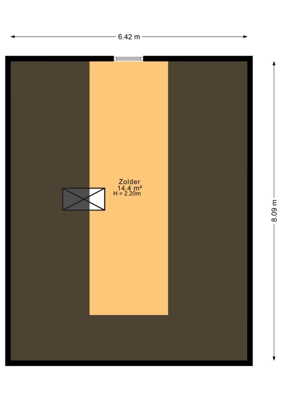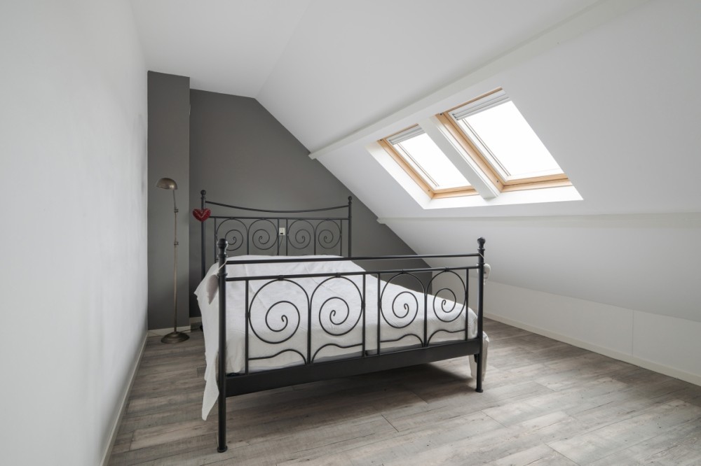 Slaapkamer voorzijde, afmeting circa 8.9 m2, met twee Velux tuimelramen.