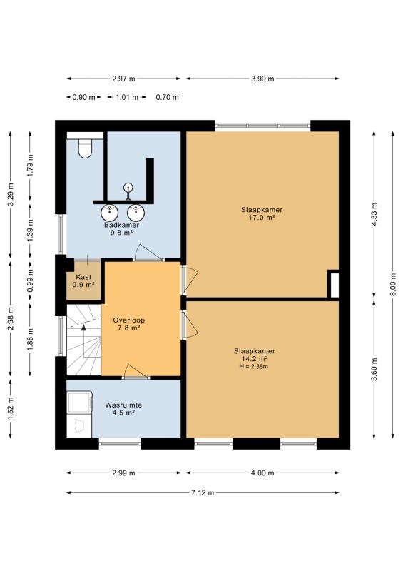 Alle kozijnen op de eerste verdieping (behalve op de badkamer) zijn kunststof met HR++ glas.