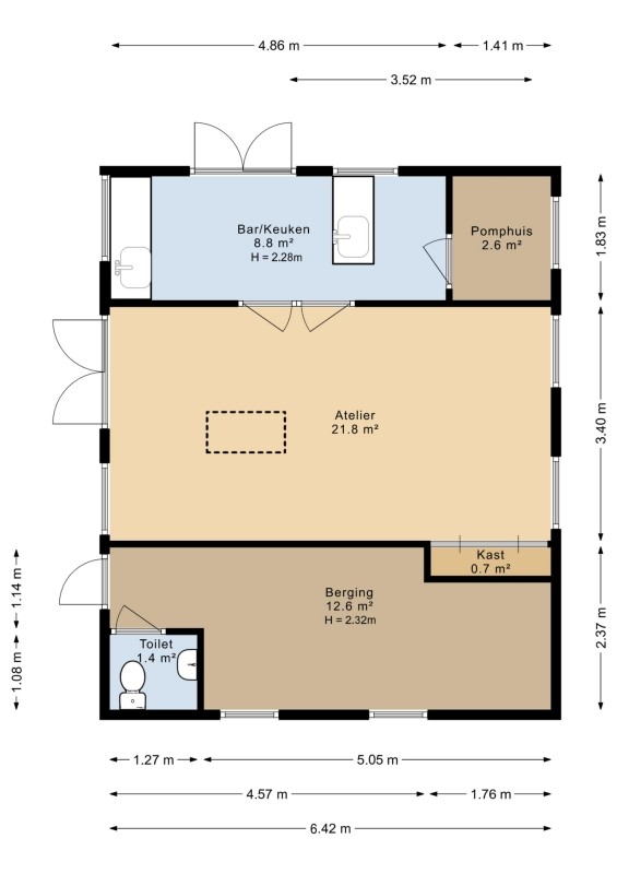 * Aparte ruimte ten behoeve van de zwembadinstallatie en een boiler voor het bargedeelte;