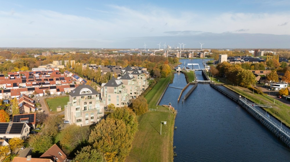 Op een prachtige locatie, aan het water gelegen, ruim appartement met een eigen inpandige garage, 2 terrassen en een geweldig uitzicht over de sluis en het Wilhelminakanaal.