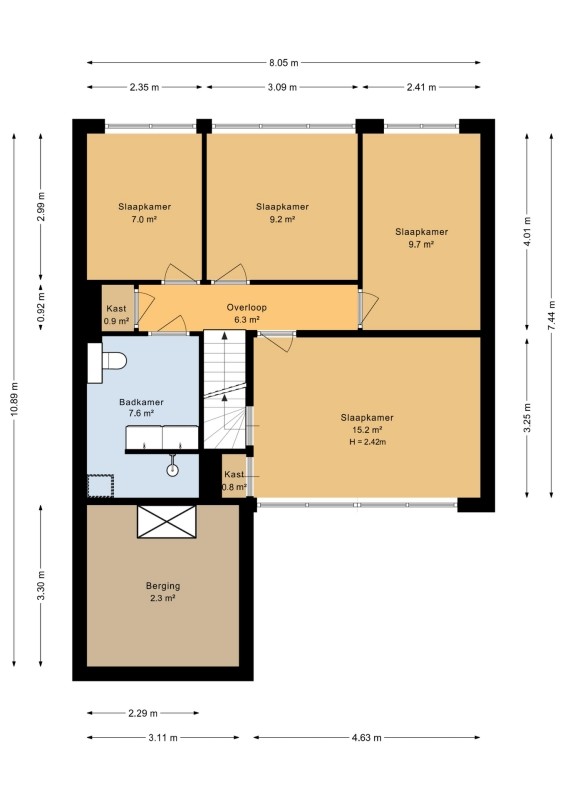 - De woning is voorzien van rolluiken op de eerste verdieping.