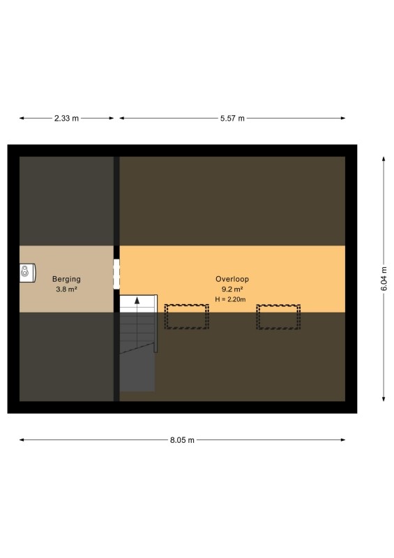 Deze tweede verdieping is te bereiken via vaste trap in de slaapkamer en heeft een overloop met opstelplaats t.b.v. cv-ketel en geeft toegang tot de zolderruimte met 2 Velux dakramen.